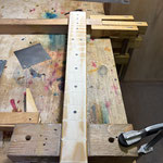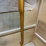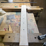トップ板を接着するために一度、エンド部でバインディングを切って剥がしたので元に戻しているのが、マスキングテープの写真です。切ったところには隙間ができるので、埋めています。